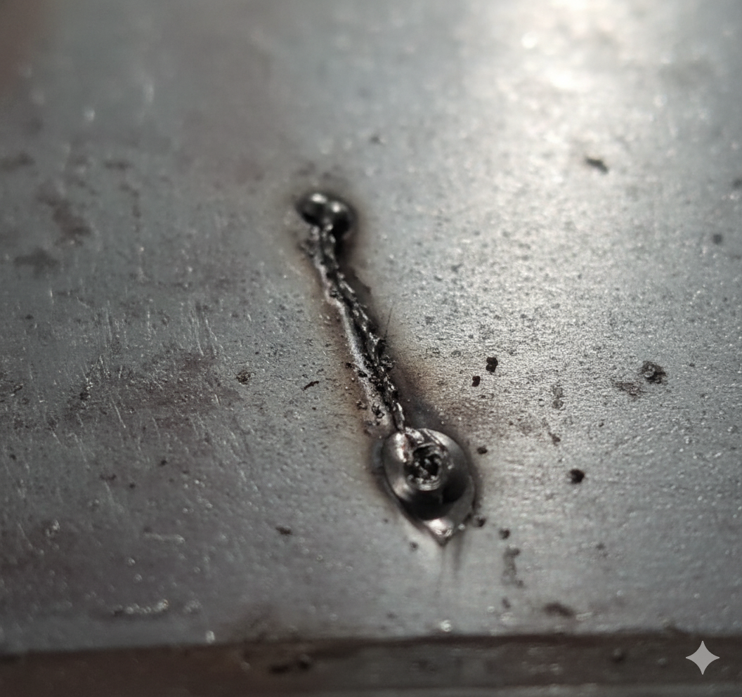 アークストライクとは、溶接中に溶接電極が意図しない位置で母材に接触し、局部的にアーク放電が発生する現象を指します。アークが生じた部分では急激な高温によって表面が溶融・酸化し、その後急冷されることで金属組織が脆化します。